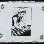 - Dabbie Making Turnovers, silkscreen on embroidered linen